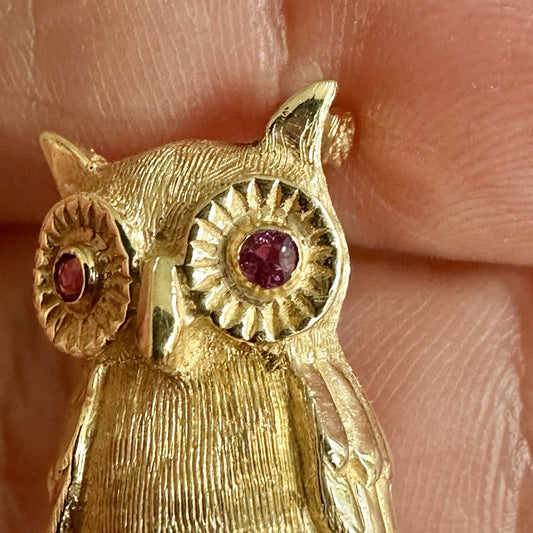 Vintage Frank Golden 14k Owl Ruby Eyes Brooch