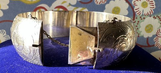 Antique Victorian Sterling Silver Engraved Scroll Wide Bangle Bracelet 58.8g