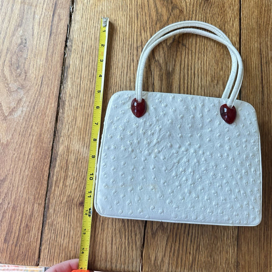 Vintage 1950’s Leather Handbag Purse Rare Ostrich Leather With Coin Purse