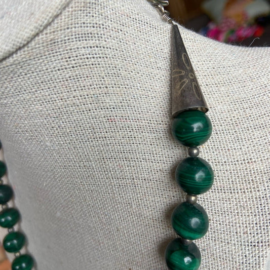 Malachite green stone beaded Necklace sterling silver clasp necklace 18 Inches