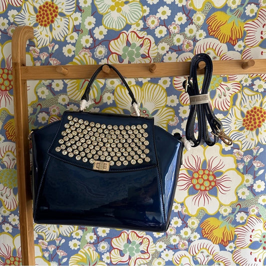 NWT Orli patent leather or patent vinyl, unsure bag with fab rhinestones