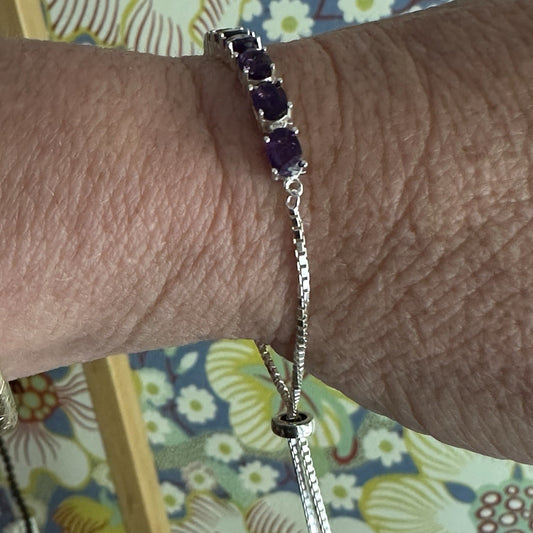 Amethyst Sterling Tennis Bracelet sterling silver 925 Adjustable Closure