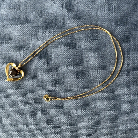 Vintage 14k Garnet Heart And Diamond Pendant Necklace