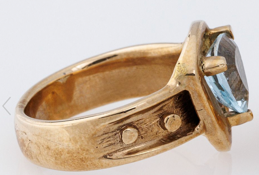 13k yellow gold ring with blue topaz, size 6, 4.7 dwt. ( 7.31 g)