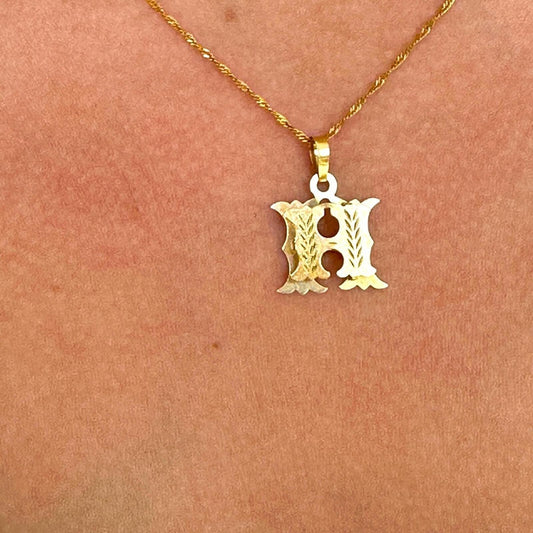 14k gold H raised double image pendant