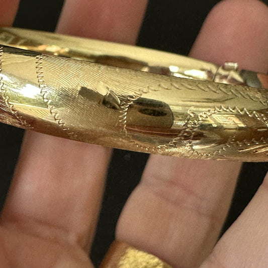 Vintage 14K etched hinged bangle bracelet 17g