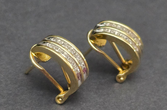14K Gold Double Row Diamond Half Hoop Earrings