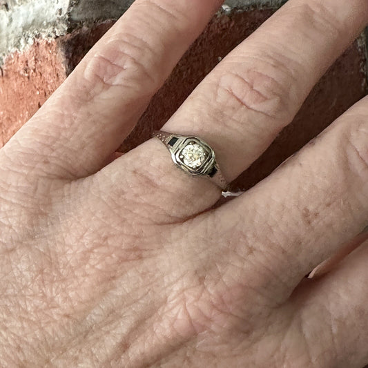 Antique 14K Gold .45ct Old European Cut Diamond & Lab Sapphire Art Deco Ring