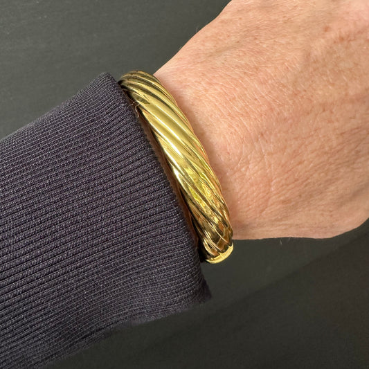 Big lusty 18k 31g twist hinged bangle 6.9 inches inner circumference