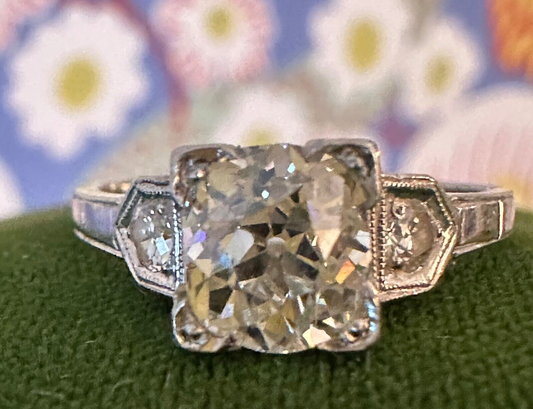 Antique 17k Old Cushion Cut Diamond ring