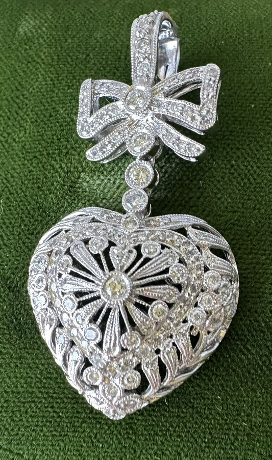 Antique 14k 2.2 cttw Diamond Heart Pendant Or Brooch