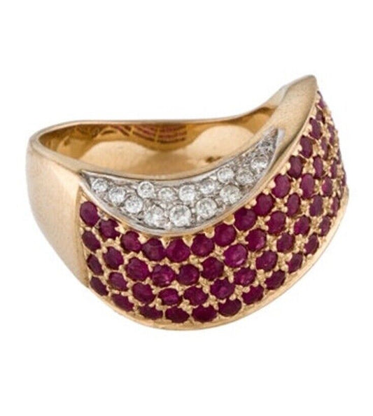 14k Diamond Ruby Ring Wave Design