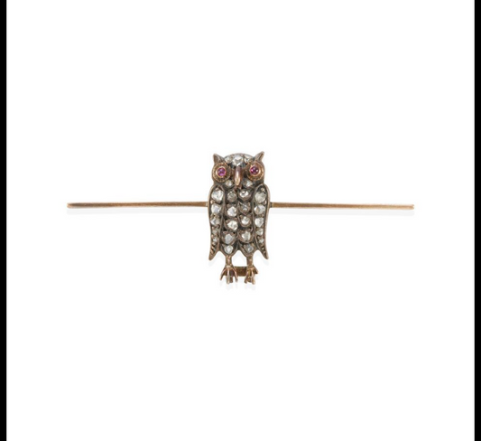 ANTIQUE OWL DIAMOND BROOCH