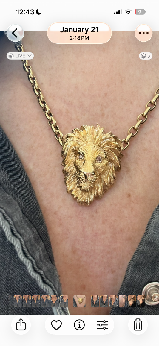 vintage 14 karat gold lion head pendant brooch