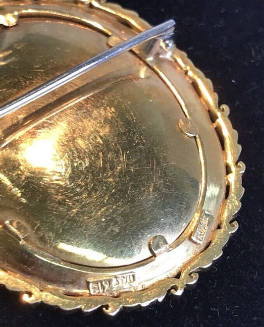 18 Kt Italian Hand Painted Victorian Cameo Diamond Convertible /Pendant Brooch