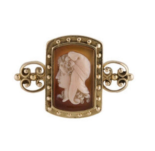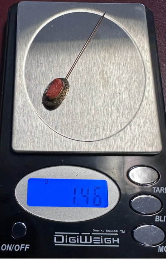 Antique Victorian 10k Gold Coral Cameo Stick Pin Classical Lady Profile