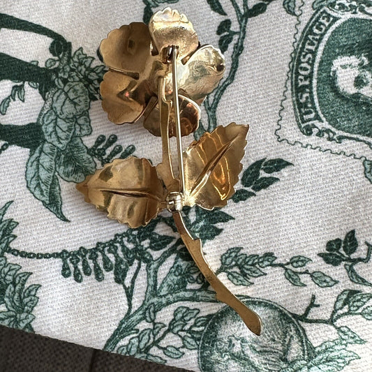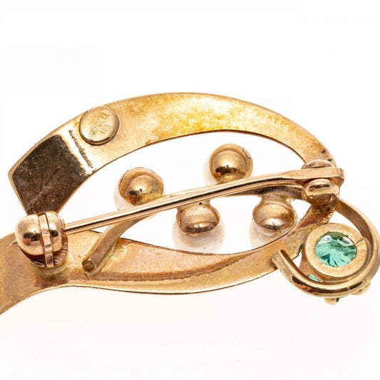 14k Van Dell yellow gold vintage pearl and emerald brooch