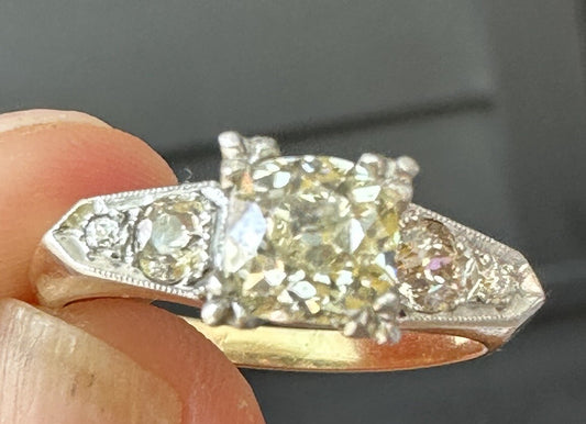 Old European Cut VS1-VS2 Diamond 14k Two Tone Gold Ring Size 8.25i