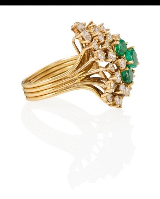18k Diamond Emerald Cocktail ring Fabulous !! 3 cttw Of Diamonds VSI