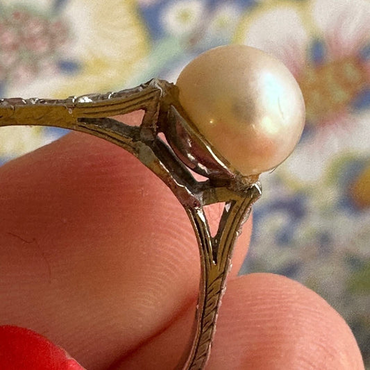 Antique Circa 1920’s platnium diamond pearl ring. Size 8