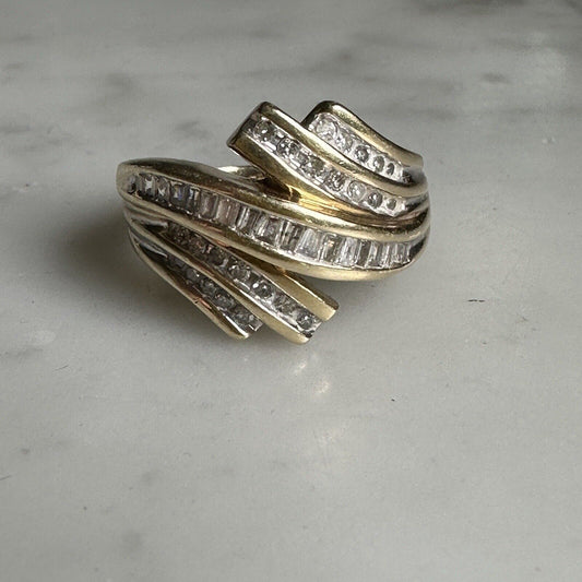 Fabulous vintage 10k YG diamond cocktail ring 5.5 G Size 7.5