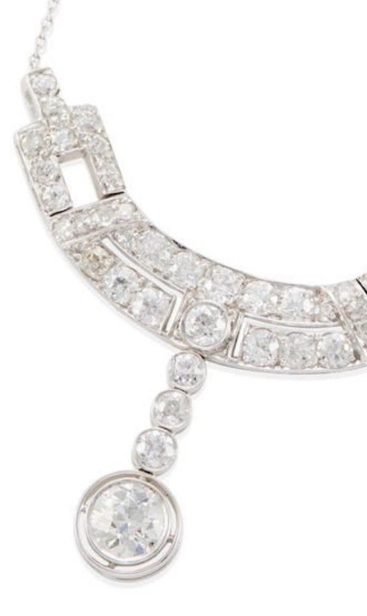 Art Deco Old European Cut Diamond Platnium Necklace 3.5 Cttw