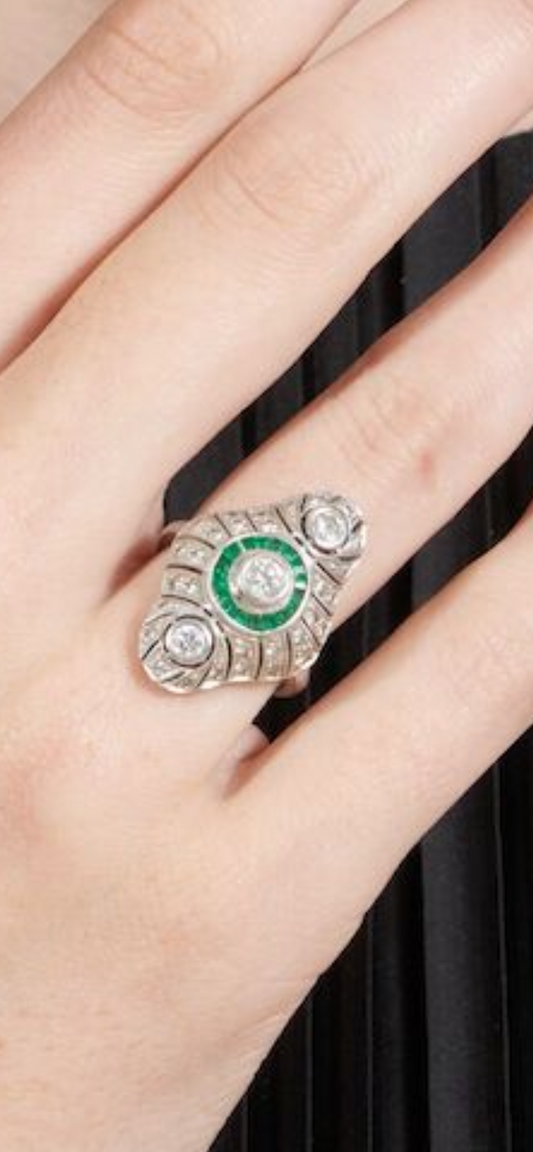 Circa 1930 PLATINUM, EMERALD, AND DIAMOND RING