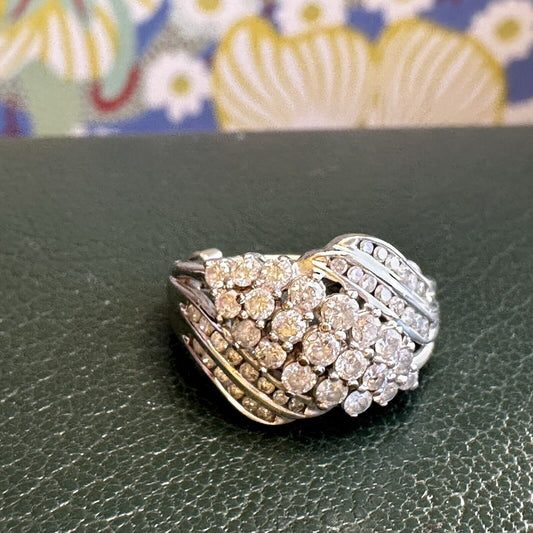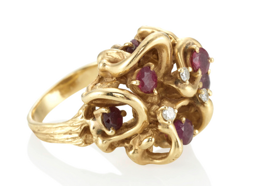 Vintage Heavy Estate 14K Gold Ruby & Diamond Cluster Cocktail ring