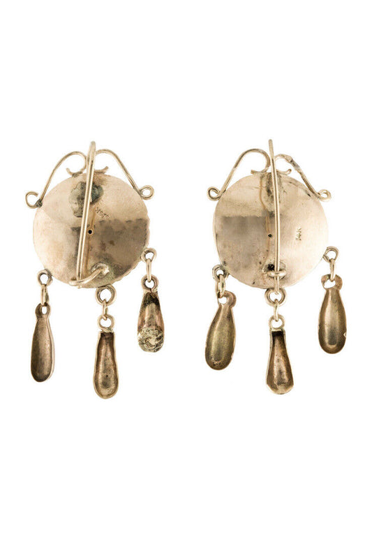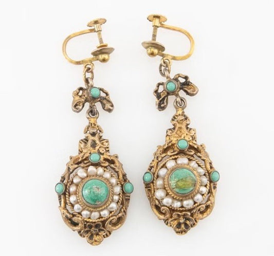 Antique Turquoise And Seed Pearl Gilded Silver Dangle Earrings