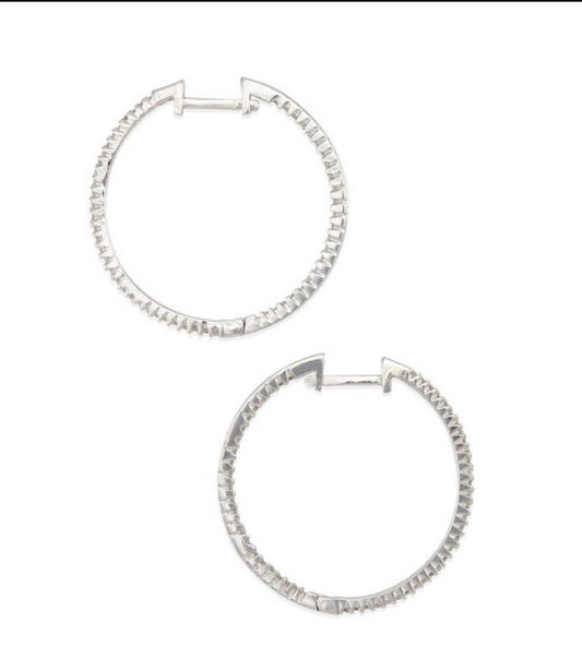 NWOT 14K White Gold Inside Out Diamond Hoop Earrings 1.29-1.35 Cttw