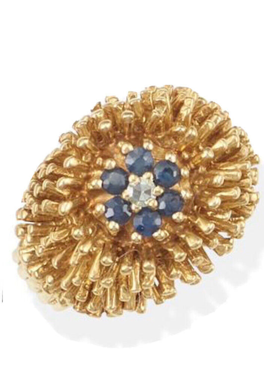 Vintage Yellow 14kt Gold And Sapphire Ring And Earrings Set