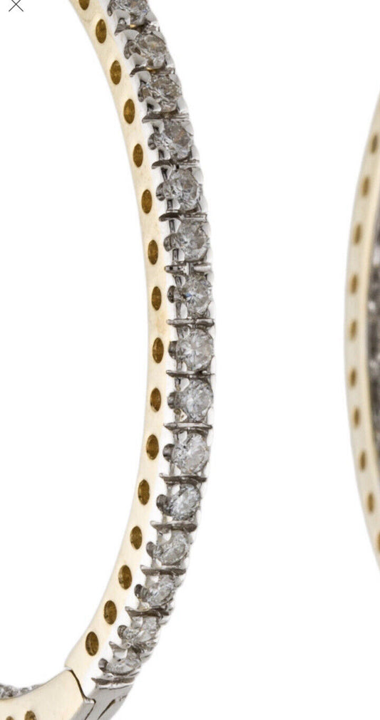 1.2 ct Diamond Hoop Earrings Women in 14K Yellow Gold Round Inside Out 1.26 inch
