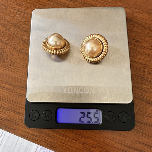Vintage 1980s Kenneth Jay Lane Faux Pearl Cabochon Clip On Earrings Couture KJL