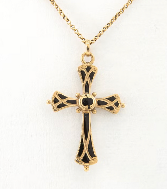 Circa 1800's C. Tengstedt & Son 18k Rolo chain and Enamel Cross Necklace