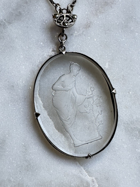 Neoclassical Cut Crystal Figural Pendant On Sterling Crystal Chain