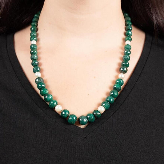 Genuine Emerald 7 pearl Strand Necklace