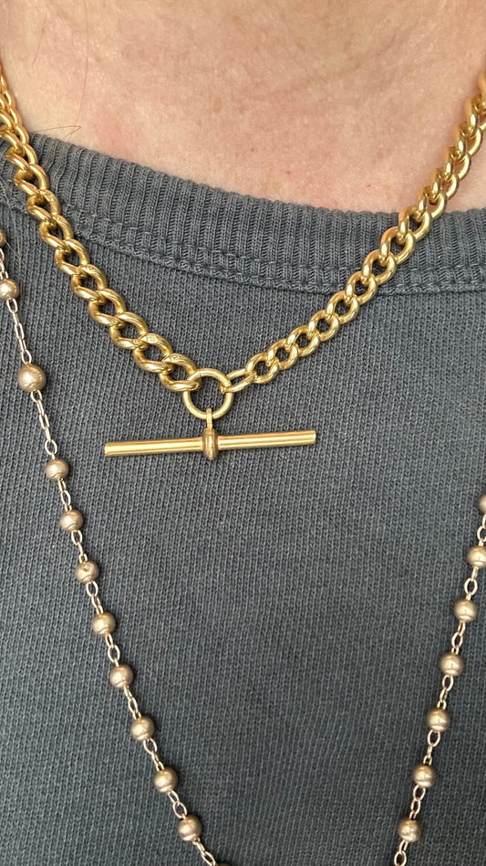 Antique 1922 Sterling Albert chubby solid watch Chain 16” & T Bar