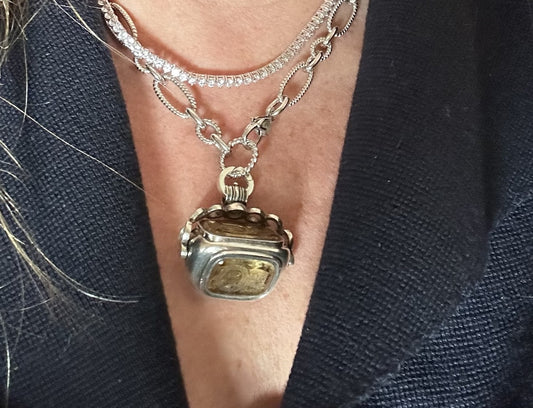 Antique Sterling Silver Swivel Fob And Chain