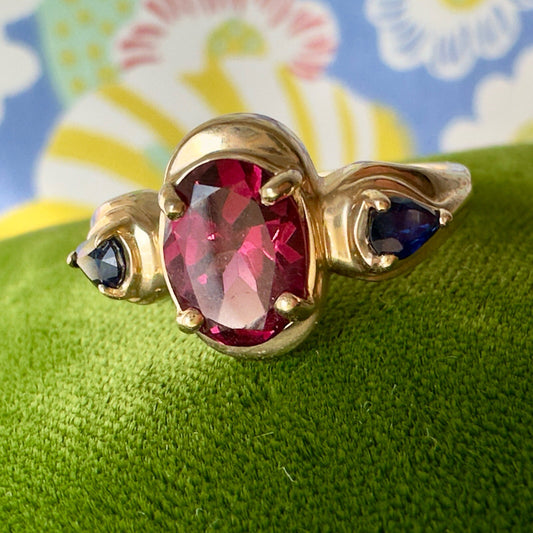 14K Natural Red Tourmaline & Natural Sapphire Ring, Size 6.75