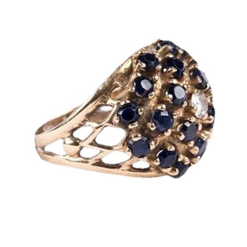 Vintage 14k Sapphire Diamond Dome Ring