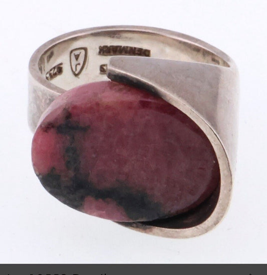 Jens Asby Design; Modernist Sterling Silver and Pink Gemstone Ring 13 G