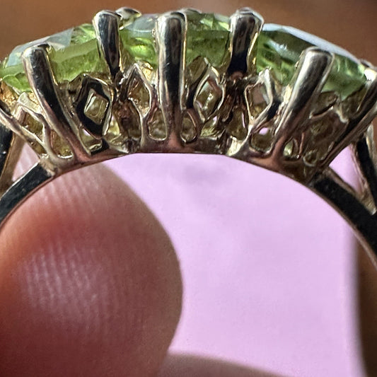 10k Yellow Gold Peridot-1.76 tcw 3 Stone Band Fine Ring-Sz 8.25
