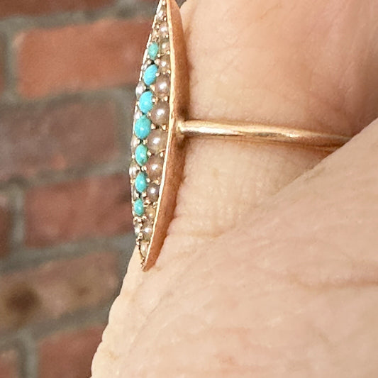 Antique Victorian Navette Ring Persian Turquoise Rose Gold 10k Size 5.25
