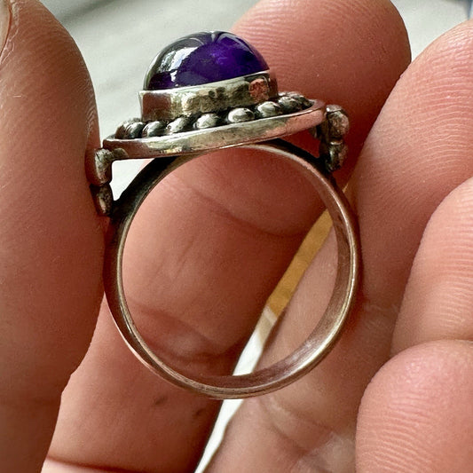 Sterling Silver 925 Deep Purple Amethyst Cabochon Ring Size 9