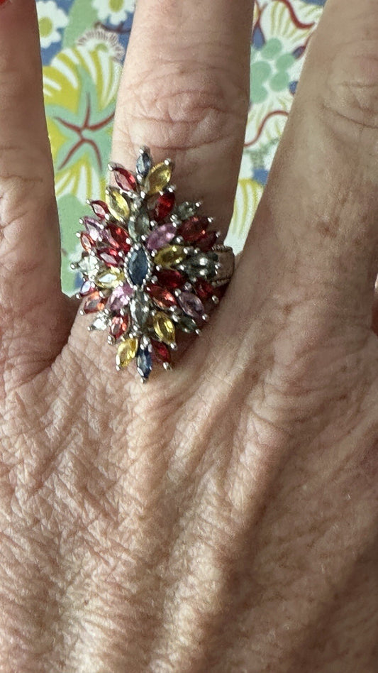 Sterling Silver Multi Gemstone Ring Size 8