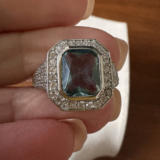 Blue Topaz Diamond Sterling Silver Ring Size 9