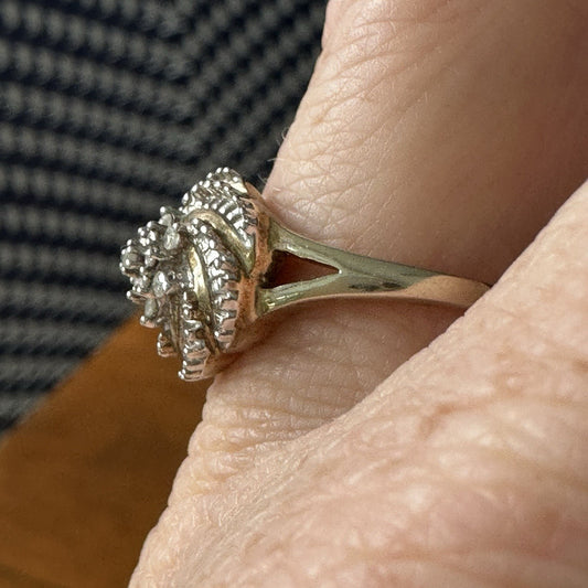Diamond Sterling Silver Swirl Ring Size 6.75