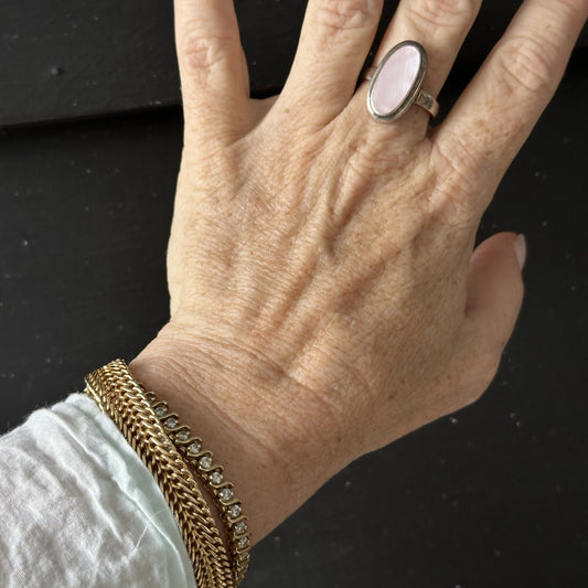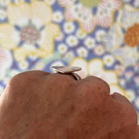 Sterling Silver Cocktail Ring Pink Mother of Pearl Square Size 10.2
