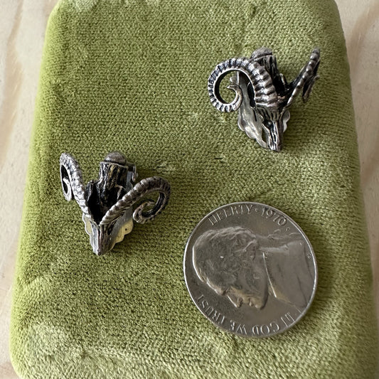 Aries ! Vintage Ram Sterling Silver Clip On Earrings
