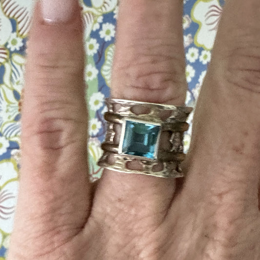 Natural Blue Topaz 925 Sterling Silver SAJEN Brand Ring Size 7